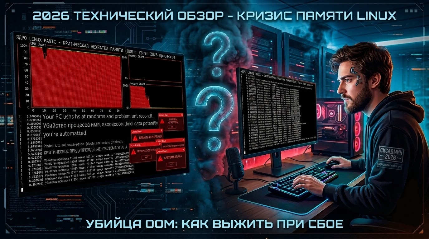 Если ваш Linux-сервер (VPS или выделенный) стабильно зависает каждые 2-8 часов, то в 80-90% случаев виновата нехватка оперативной памяти + срабатывание OOM killer. Система начинает убивать процессы, swap забивается, CPU улетает в 100% и привет, полная неотзывчивость по SSH и в сети.