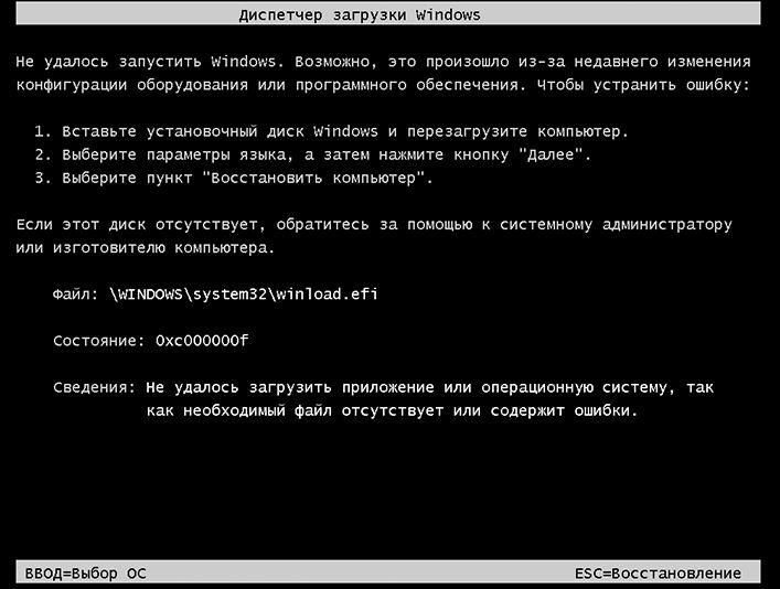 Что такое winload.efi и почему Windows выдает эту ошибку?