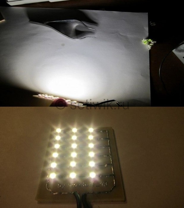 И так. На самом деле очень яркая лампа получилась, вполне заменяет 30-ваттную лампу накаливания.